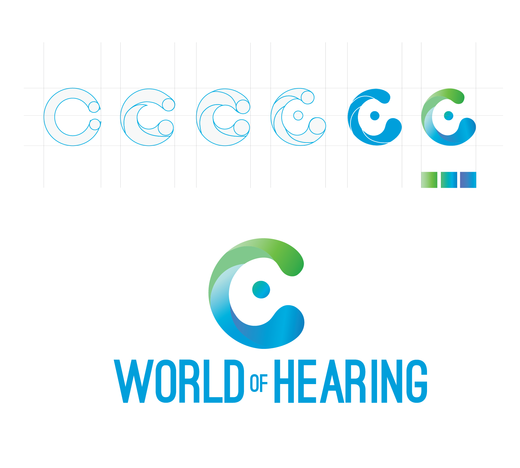 My goal was to visualise a human ear shape in a modern way combining hearing aid in it. The hearing aid element also meant to have a subtle global feel to connect with a company name.