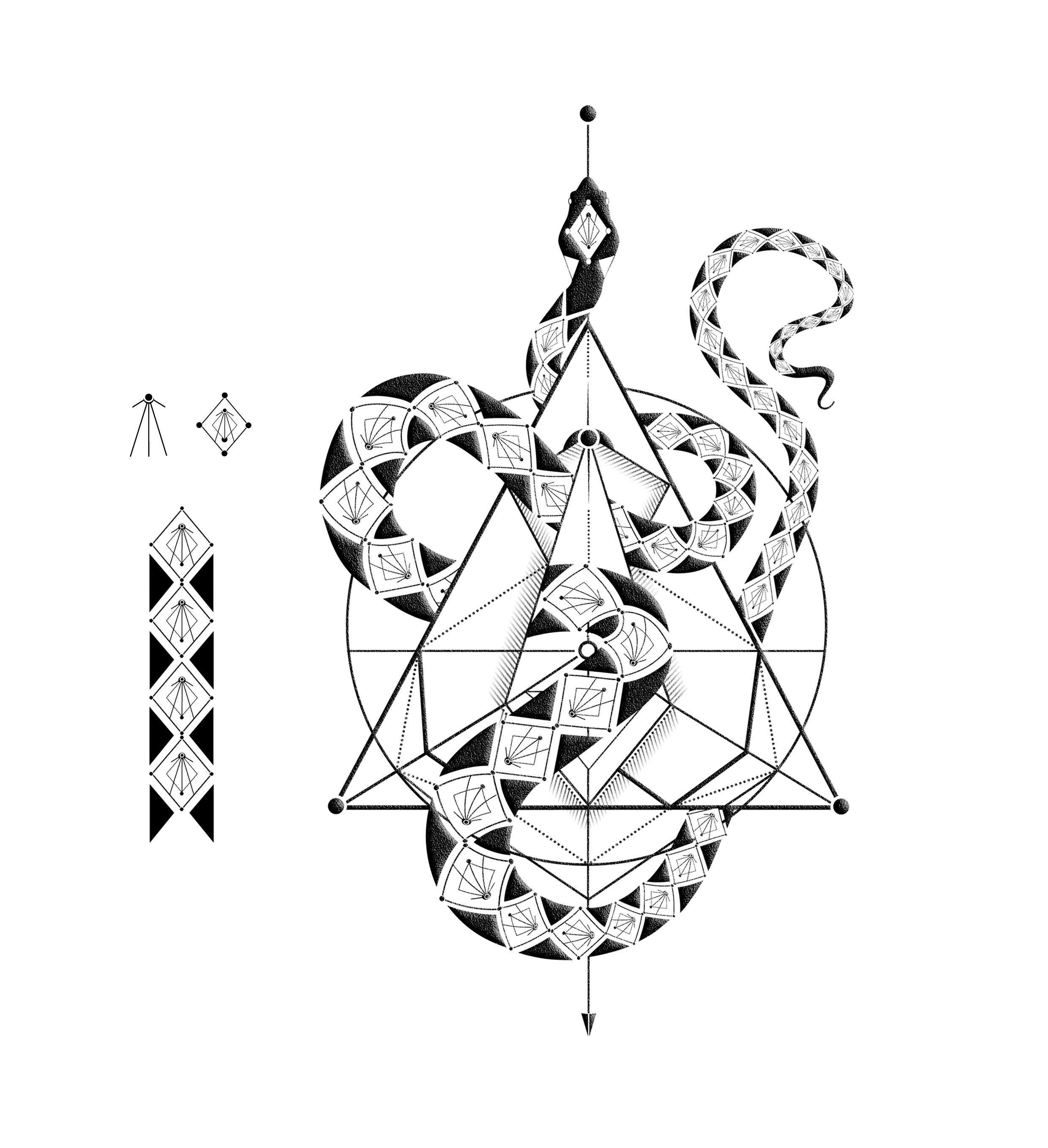 Black and white geometric tattoo design — a personal project. This custom vector illustration reflects my keen interest in geometric drawing techniques. I was excited to explore this style in a real tattoo context, focusing on symmetry, balance, and clean line work.