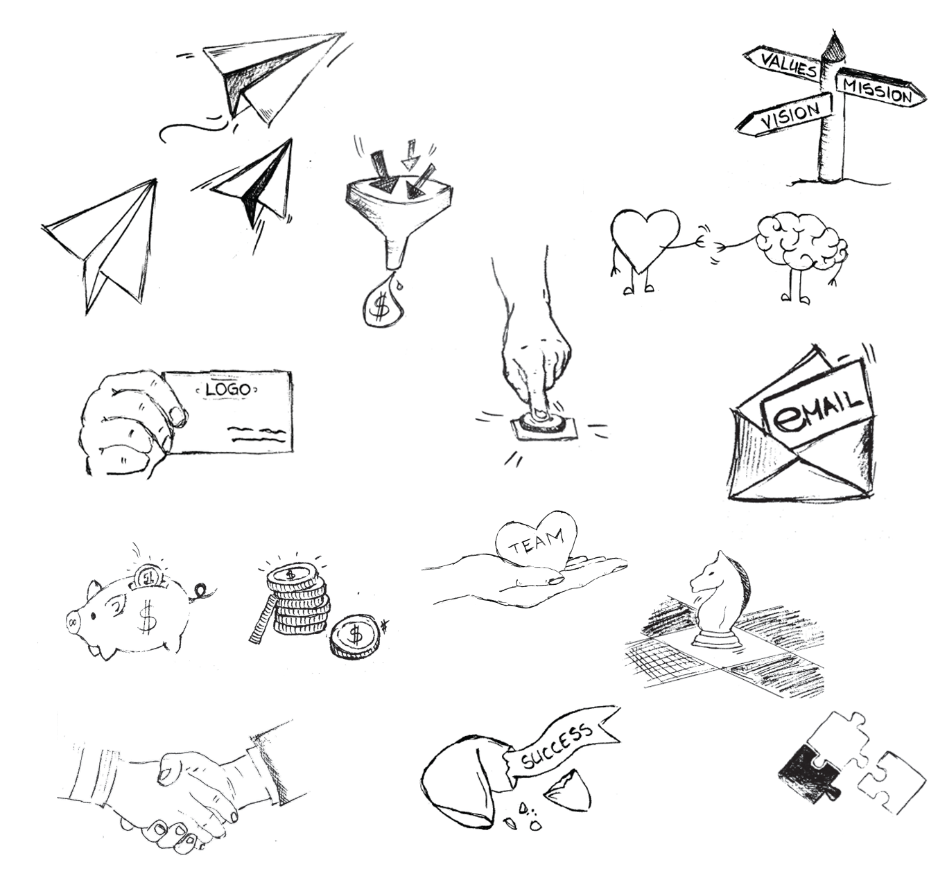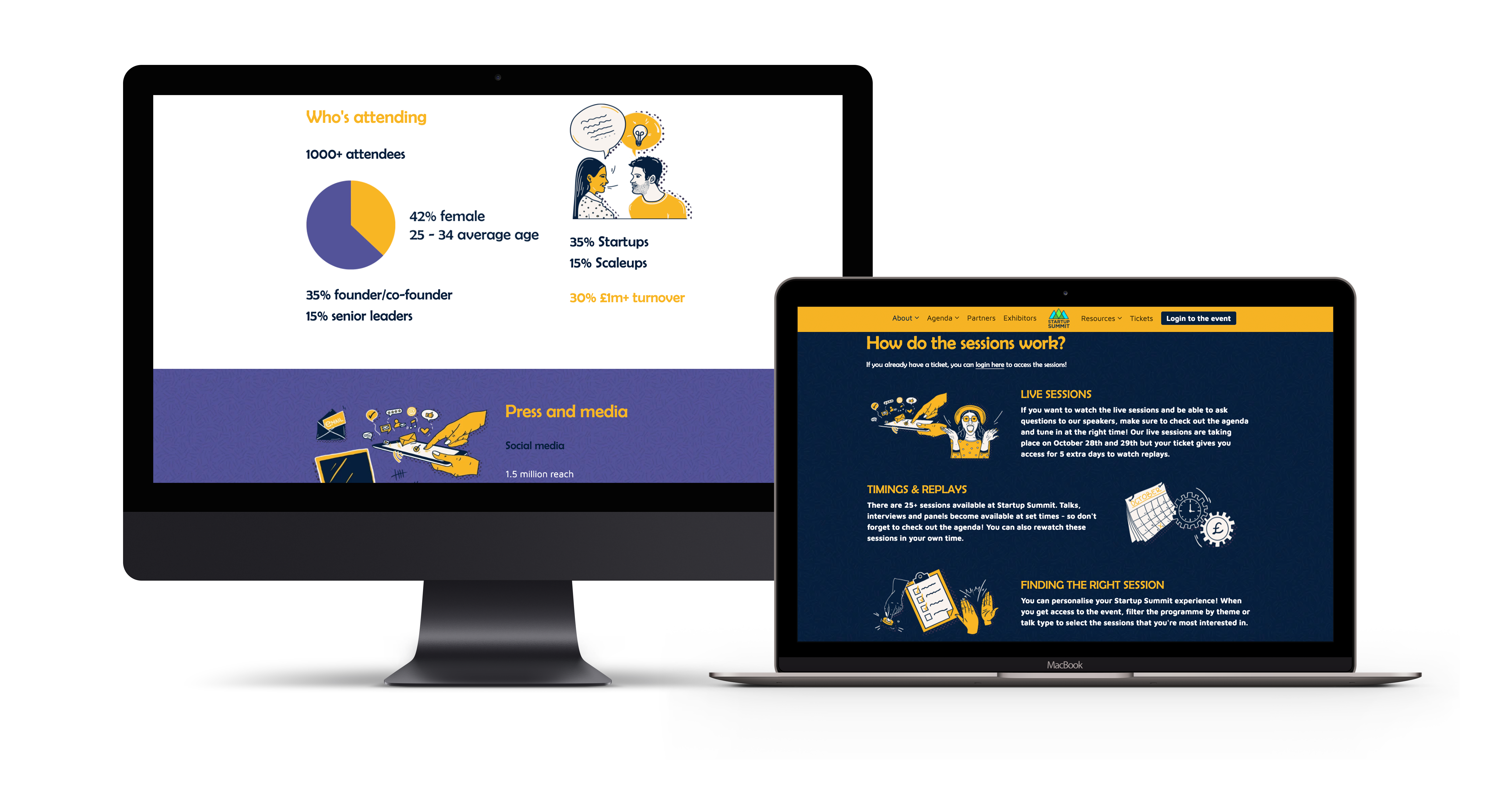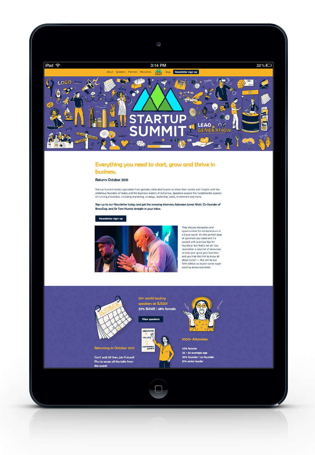 I was tasked to come up with concepts for illustration series, featuring various items of startup world and create them in a specific, unified three colour palette style. Later I combined those illustrations into main event poster. I produced over 50 custom hand-drawn vector illustrations and scenes. They were exported as clean, scalable assets and used across digital channels (web, email, social) and print collateral including onsite event branding.