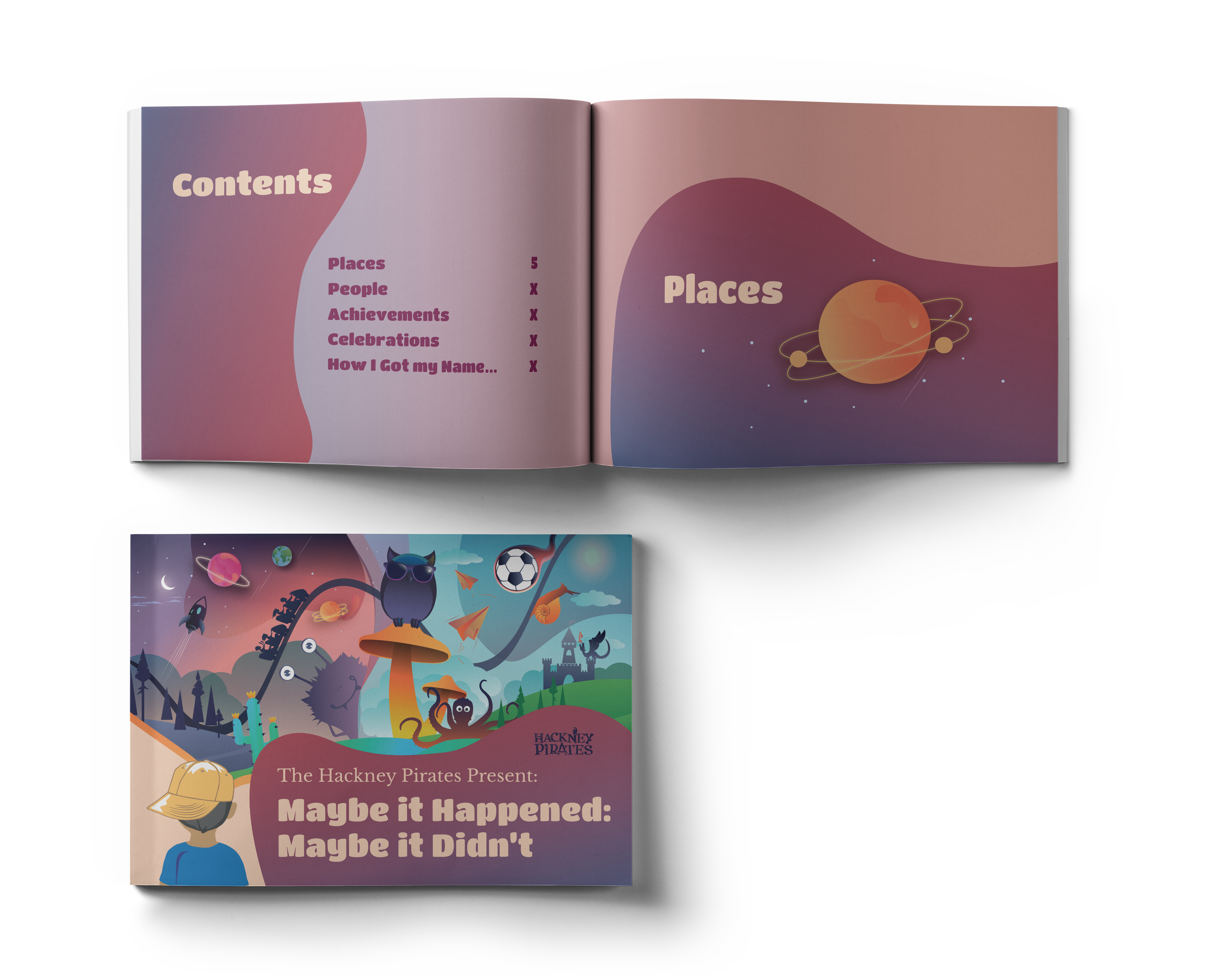 Commissioned illustration and book layout design for Literacy Pirates, a UK creative learning charity that empowers young writers (ages 9–13) through workshops, storytelling events, and publication opportunities.